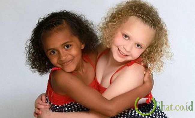 Walaupun berbeda warna kulit, rambut dan mata, saudara kembar ini memiliki senyum nakal yang sama dan memiliki ikatan batin yang sangat dekat.