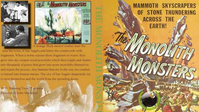 Teror tersebar di Monolith Monsters adalah satu cukup asli: raksasa, batu kristal mulai tumbuh di seluruh kota AS, mengubah penduduk beruntung ke dalam patung membatu. Menghisap semua air di sekitar mereka, para monolit hitam menyebar dengan tumbuh dan pecah menjadi ribuan keping.