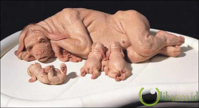 [lihat.co.id] - Satu lagi hasil karya dari Patricia Piccinini. Patung ini menunjukkan kombinasi antara tubuh manusia dengan hewan yang menjadi ciri khas karya-karyanya.