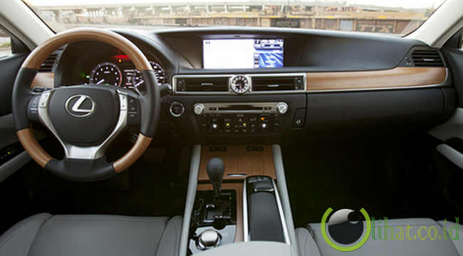 [lihat.co.id] - Interior Lexus GS450h terasa begitu tenang, menampilkan sistem infotainment dengan kontrol seperti mouse. Kemudian fitur pilihan berupa aksen bambu pada pinggiran kemudi dam lainya.