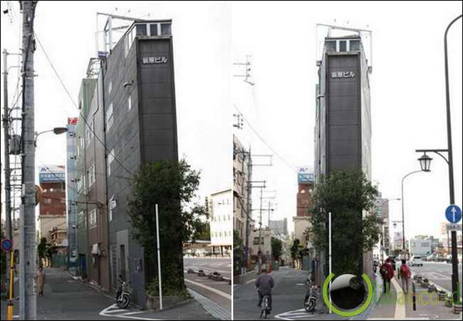 [lihat.co.id] - Karena padatnya penduduk di tokyo dan mahalnya harga tanah di tokyo, bangunan seperti ini menjadi hal yang biasa. Seperti bangunan dalam gambar di atas adalah gedung dengan 12 lantai yang kurus.
