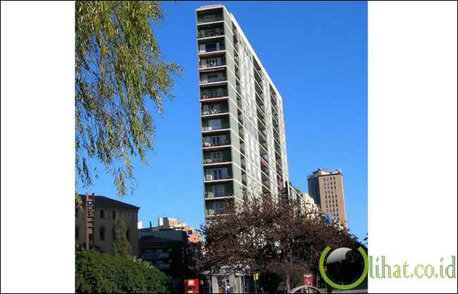 [lihat.co.id] - Bangunan tipis yang terletak di Kensington Selatan - Royal Borough of Kensington and Chelsea di London. Gedung ini dilengkapi dengan lift eksternal.