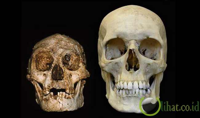 Perbandingan Tengkorak Neanderthal (kanan) dg tengkorak manusia modern (kiri)